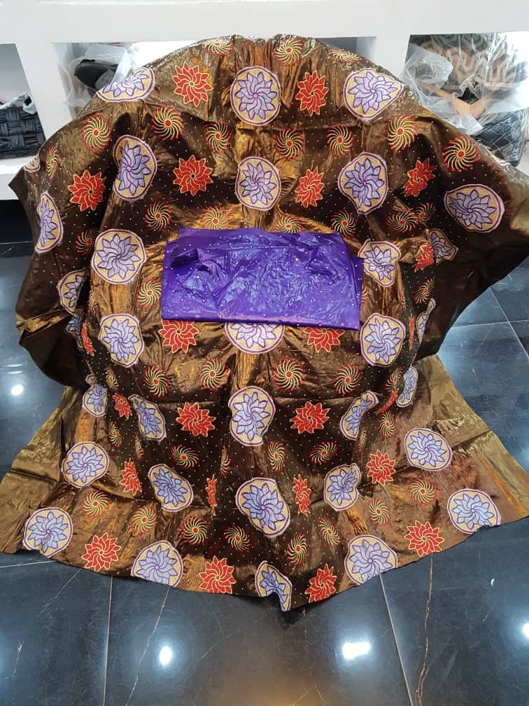 Bazin Perlé Dubaï Rosaces Multicolores Marron Bronze