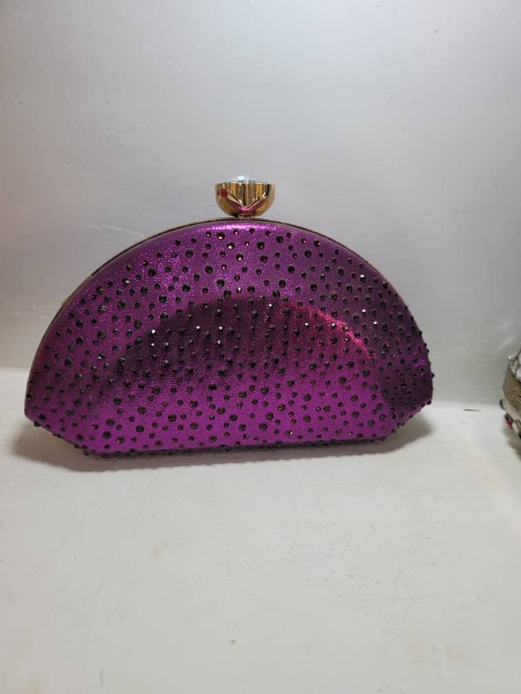 Minaudière Demi-Lune strass au style moderne et élégant. Disponible en boutique chez Titine Shop à Lambanyi, livraison possible à Conakry.
