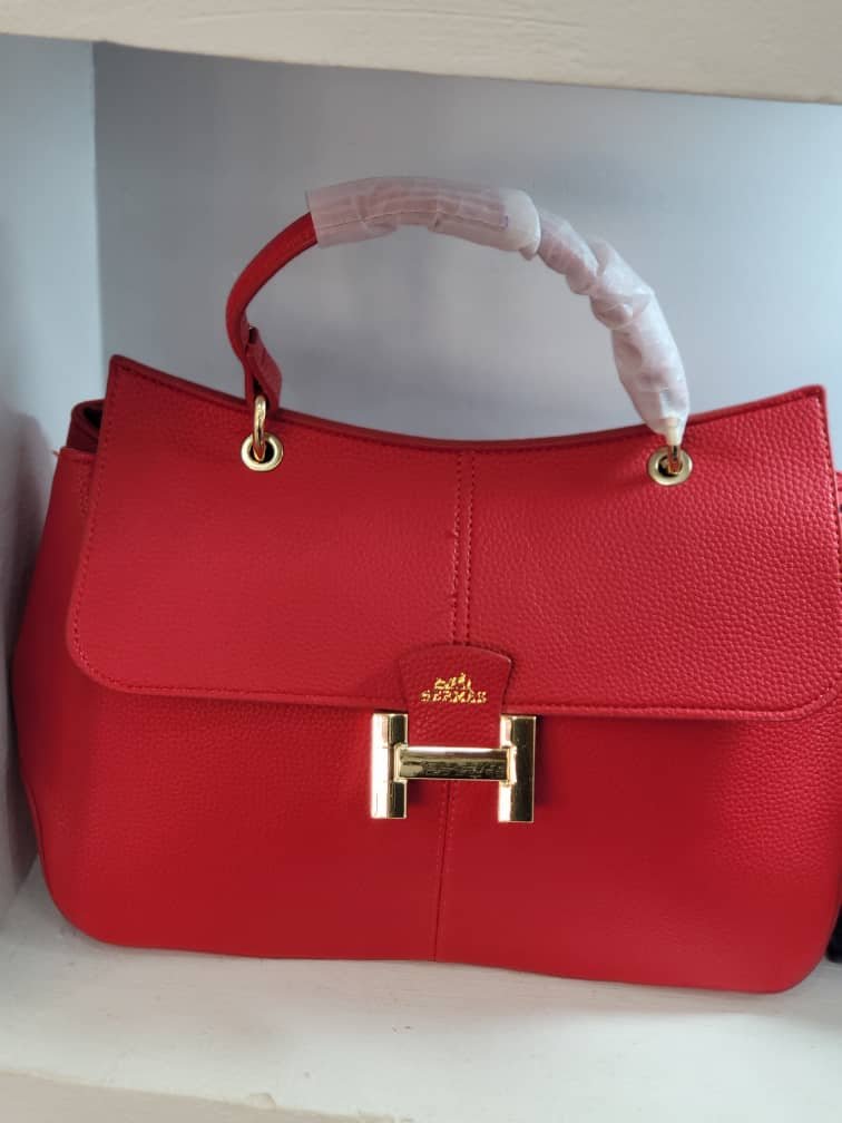 Sac à main grainé rouge élégant et pratique, parfait pour compléter votre tenue. Disponible en boutique chez Titine Shop à Lambanyi, livraison possible à Conakry.
