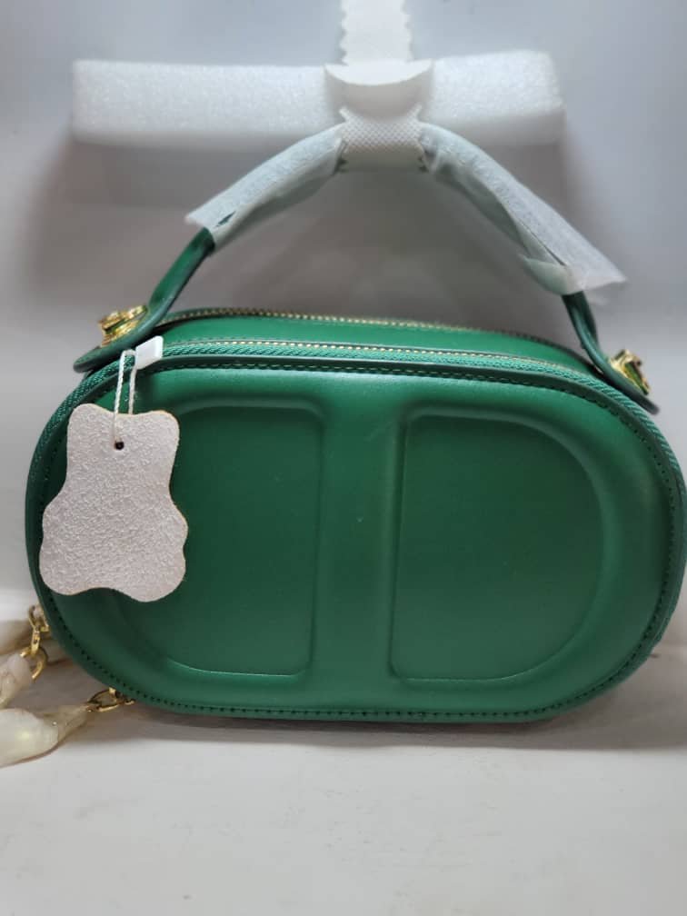 Sac caméra ovale vert émeraude élégant et pratique, parfait pour compléter votre tenue. Disponible en boutique chez Titine Shop à Lambanyi, livraison possible à Conakry.